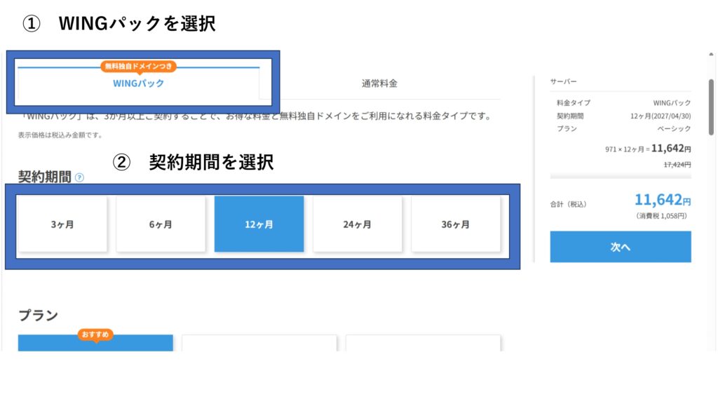① 「WINGパックを選択」