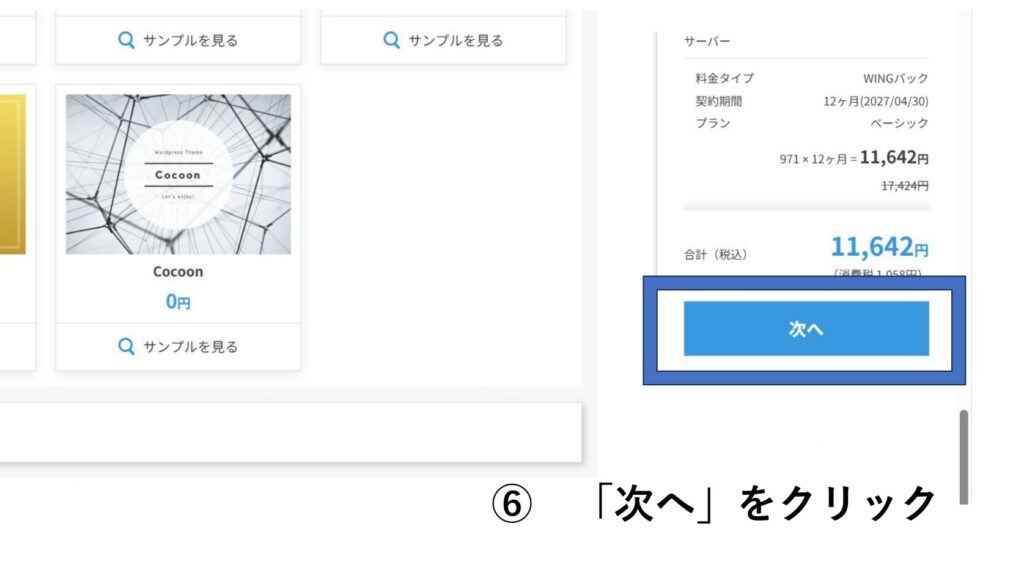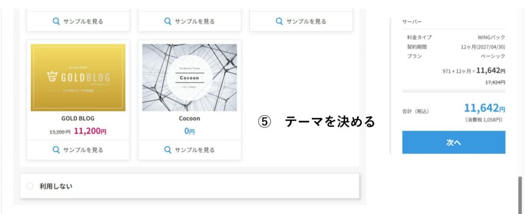 ⑤ 「次へ」をクリック
