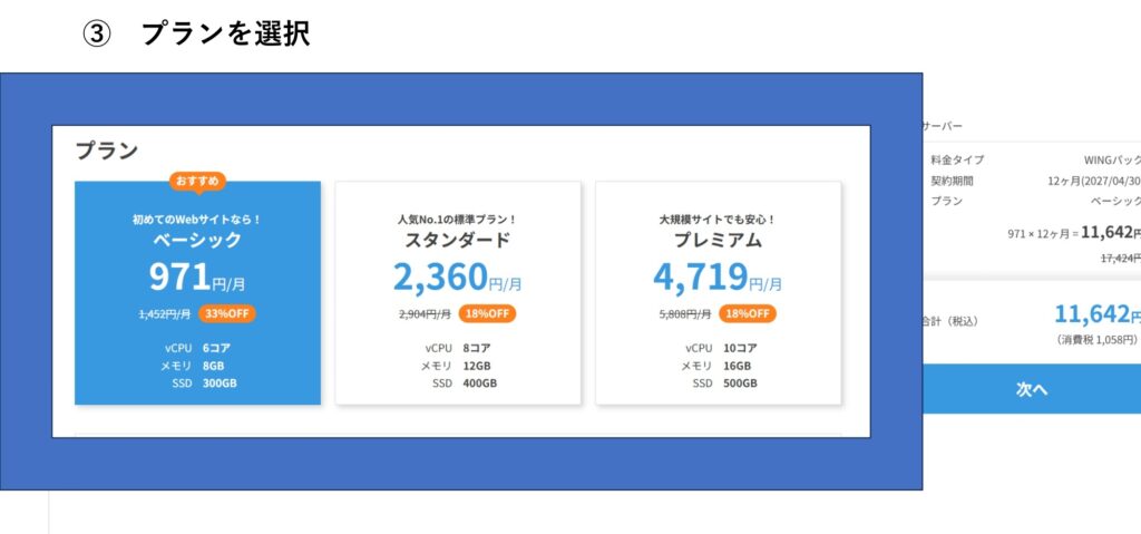 ③ プランを選択