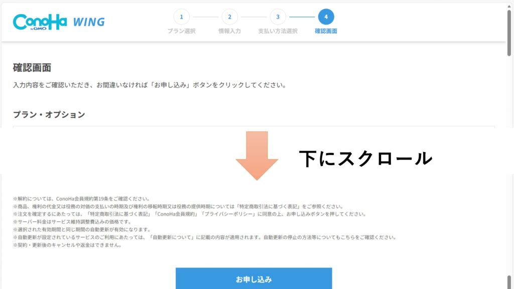 問題がなければ、【お申し込み】ボタンをクリックしましょう。