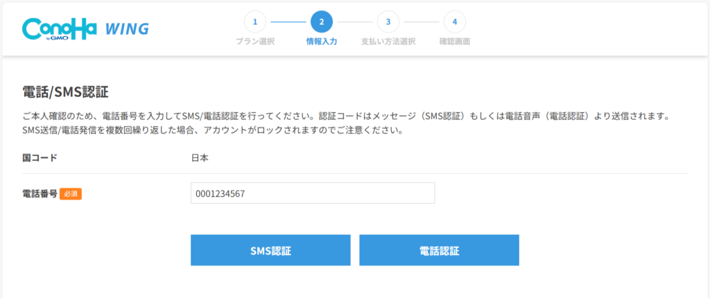 SMS認証または電話認証を選んでください。